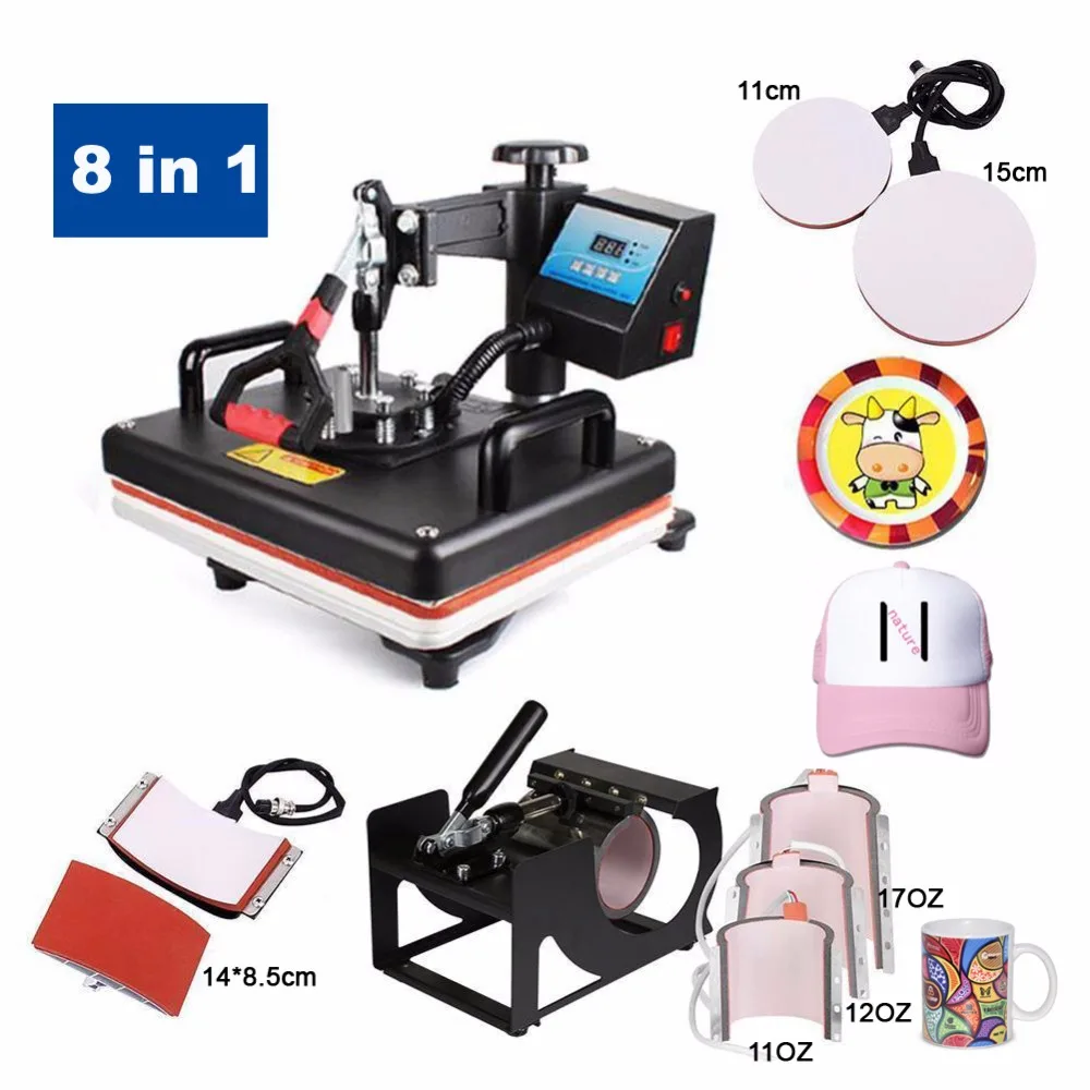 Hurry! Promo Promotions 30*38CM 8 in 1 Combo Heat Press Printer Machine 2D Thermal Transfer Printer for Cap Mug Plate T-shirts Printing printer systems Rating: 4.4 out of 5