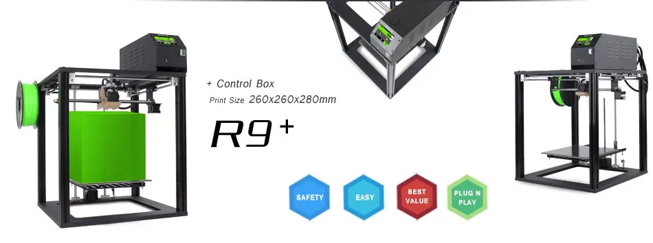 These days this Limited Excellent Special 2018 Touch Screen Easy 3D Printer Defensor R9, Full Metal Aluminum Frame 3 D Impresora Large Size 260x260x280mm product is actually cost effective for virtually everybody as well as its a very great buy for the cash.UPGRADED VERSION Defensor R9+As Easy As 1 2 3, Suit for school and home. 1. This printer is X.Y.Z structure, running faster with low noise. 2. Large build size: 260x260x280mm. 3. The Hot print platform is brand new and size is 265x265mm, which with special glass, with carbon silicon crystal coating with good adsorption of first layer. No curl on the edge. No need use shovel. 4. The machine with 3.5-inch TFT TOUCH SCREEN and system. Has newest Intelligent Main Control Board. Completely Off-line Working. Features include: resume print from break-point, pause and save data, auto leveling, etc. 5. The machine parts are custom metal machining parts and 3030 aluminum material, works stable and has higher precision. 6. Unique design control box (preset system data + factory test), when you receive it, just connect two sets of wires and plug in, you can start to print. 7. Automatic Filament Monitoring saves time and effort with material information and print profiles preloaded on each reel to let you start printing straight away. Packing Contents: 1x 3D Printer R9+, 1x PLA 1.75 Filament 50g, 1x Tool Kit, 1x USB Flash Disk, 1x Power Cable, 1x Leveling Card Paper, 1x Cleaning, 1x 0.4mm Nozzle, 3x Spring (for synchronous belt). Specification: Printing Technology: FDM Layer Resolution: 0.08~0.3 mm Positioning Accuracy: ±0.1mm Supported Print Materials: PLA, ABS, Print Speed: 10~150mm/s Travel Speed: 150mm/s Nozzle Diameter: 0.4mm (optional 0.3~0.6mm) Build Size: 260*260*280mm Heatbed Temperature: 0~110 Degree Celsius Extruder Temperature: 0~260 Degree Celsius Print File: GCode Connectivity: TF Card, USB Port (U disk only) Input Rating: 110-220V AC, 50/60Hz