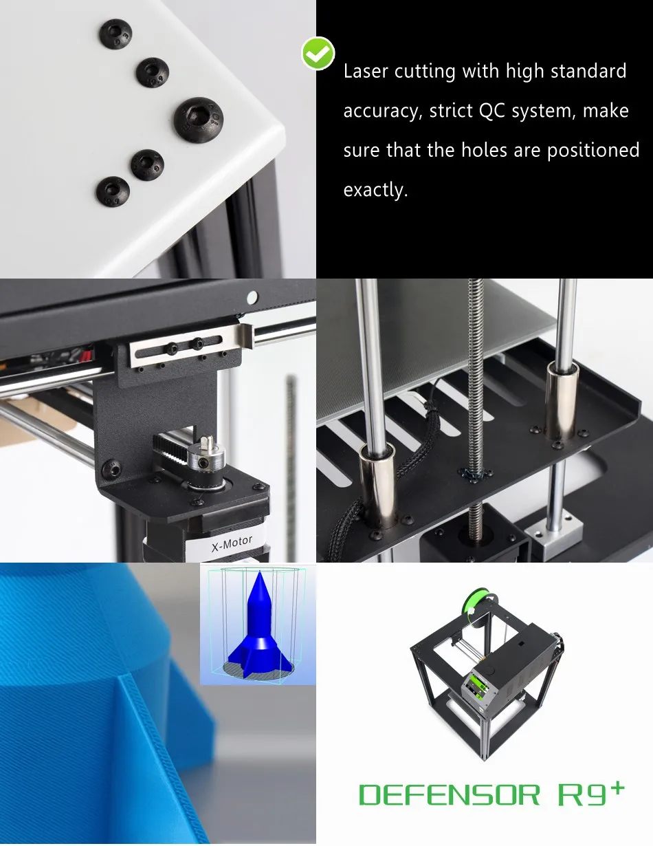 On-time Delivery: If you do not receive your purchase within 60 days, you can ask for a full refund before order completion (when you click "Confirm Order Received" or exceed confirmation timeframe).Excellent Special 2018 Touch Screen Easy 3D Printer Defensor R9, Full Metal Aluminum Frame 3 D Impresora Large Size 260x260x280mm