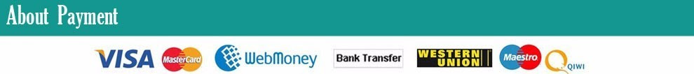 1, We accept Alipay, West Union, T/T, All Major Credit Cards are accepted TheroughSecure Payment Processor ESCROW.2, Payment must be made within 3 days of order. discount on his/her next order. |
