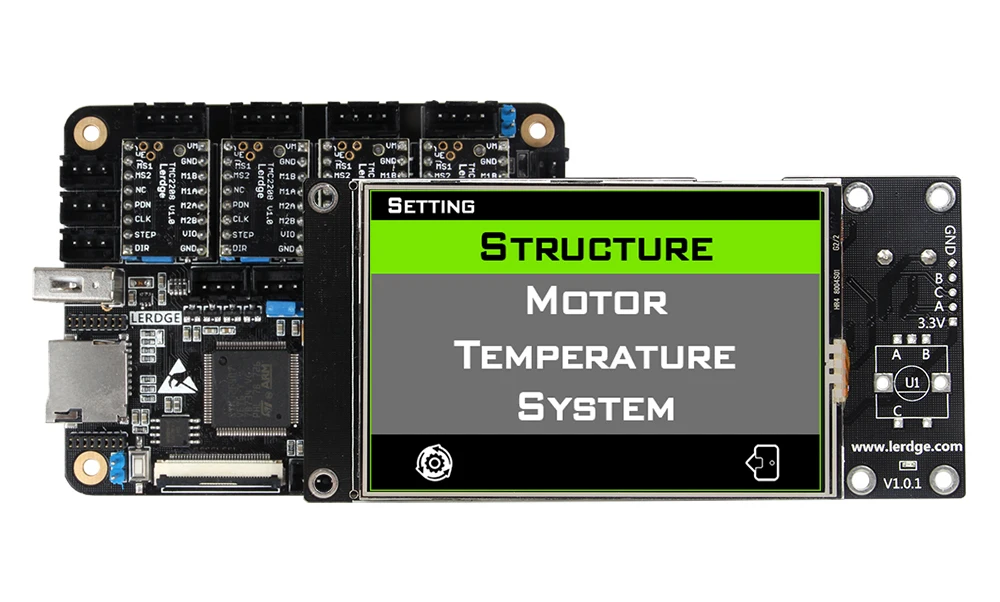 It is recommended that the motherboard is equipped with Lerdge drivers. The Lerdge motherboard currently supports A4988, DRV8825, LV8729, TMC2100, external large motor adapter and TMC2208 (other drivers not tested yet, not suggested to use). In addition, the length of the touch screen cable is recommended not to be longer than 70cm, otherwise it may cause the touch screen display interference.