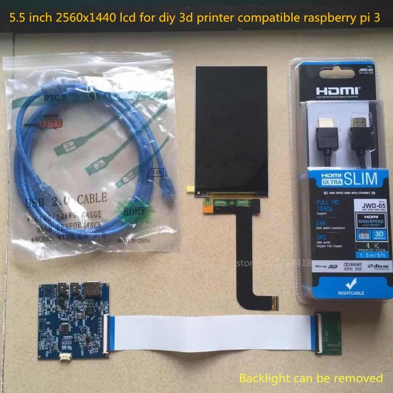 60HZ 5.5 inch 1440p wqhd 2560x1440 vr display lcd screen with hdmi to mipi for 3d vr glasses diy 3d printer raspberry pi 3
