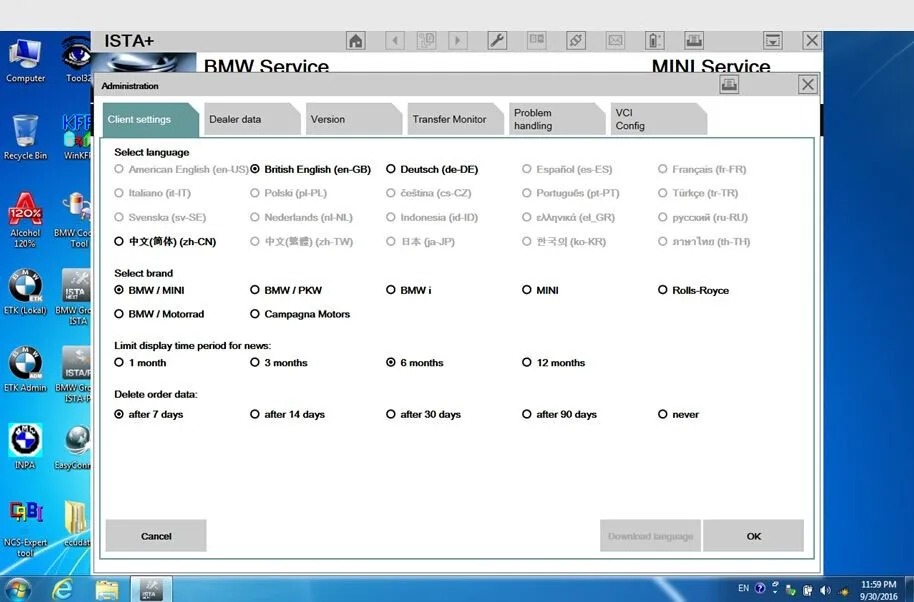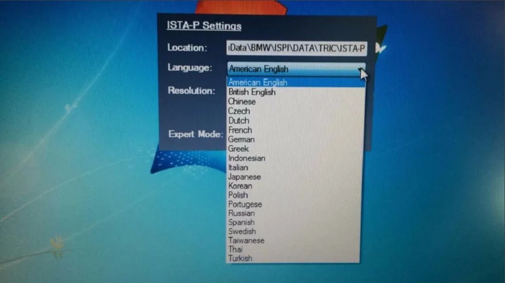 ISTA/D Only support English and German: